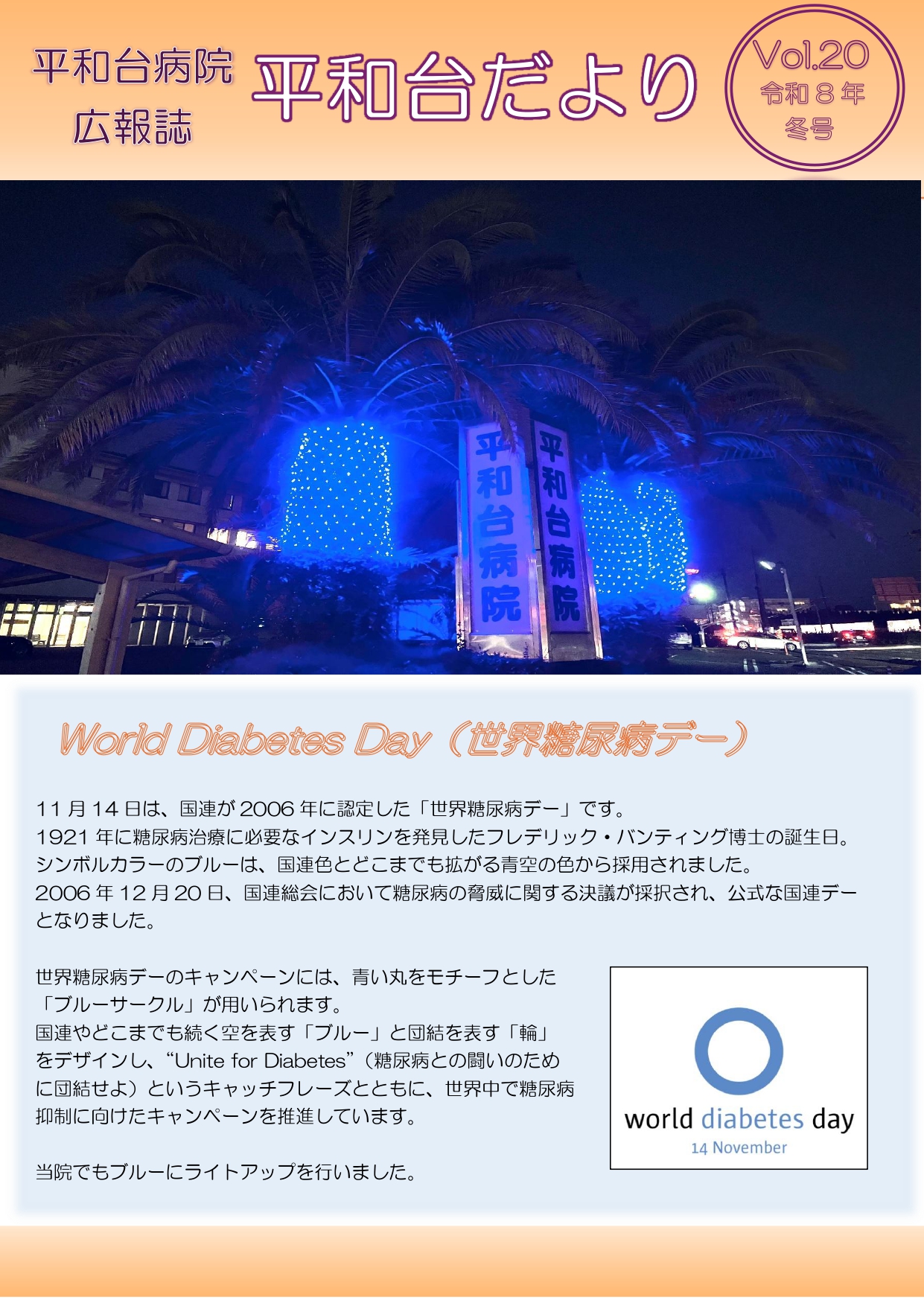 医療機関の方 病院広報誌 医療機関の方 医療連携について 糖尿病外来の紹介方法 転院のご相談 病院広報誌 当院の情報を発信する広報誌「平和台だより」を年3回発行しています。是非ご覧下さい。 過去の広報誌 Vol.19 Vol.18 Vol.17 Vol.16 Vol.15 Vol.14 Vol.13 Vol.12 Vol.11 Vol.10 Vol.9 Vol.8 Vol.7 Vol.6 Vol.5 Vol.4 Vol.3 Vol.2 Vol.1 医療機関の方 ホーム医療機関の方病院広報誌
